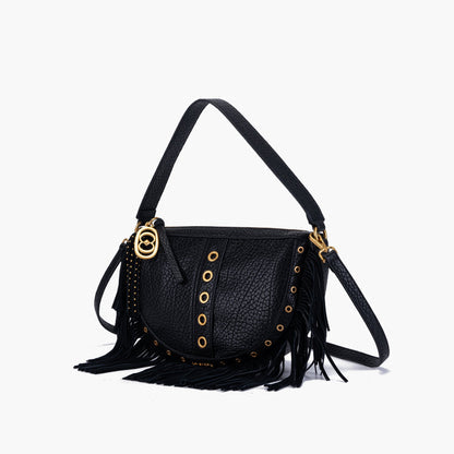 Borsa a spalla nera con frange e applicazioni oro Fringes