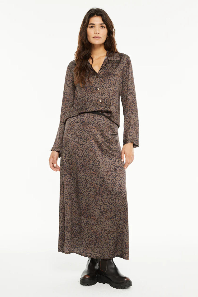 Camicia da donna con stampa animalier e chiusura frontale con bottoni. Capo sostenibile.