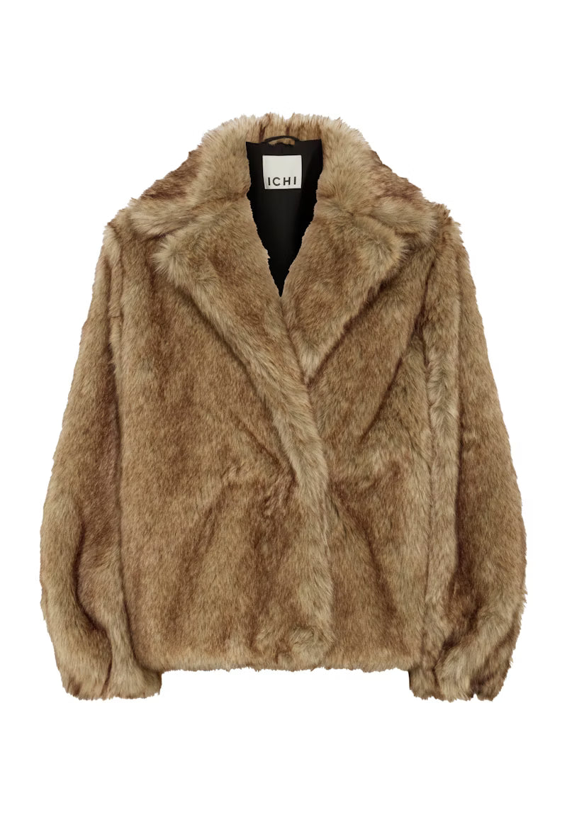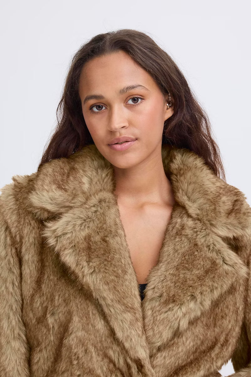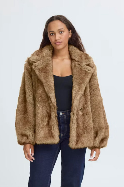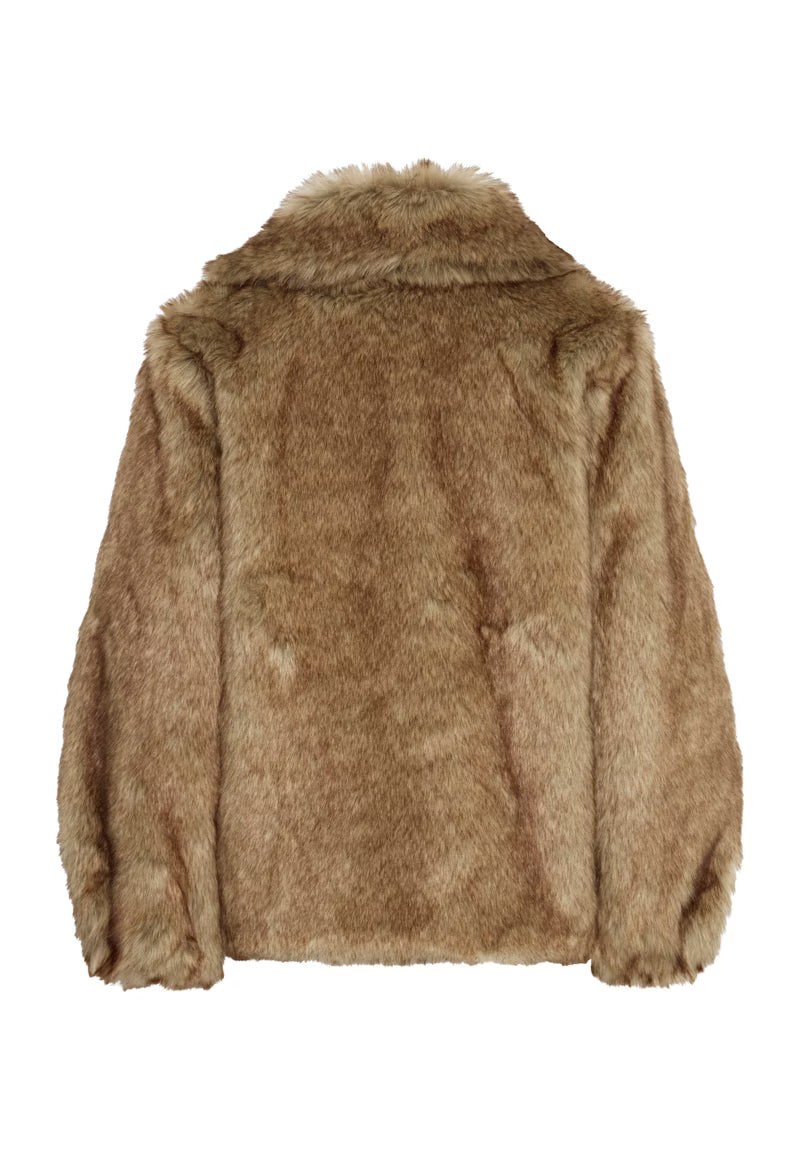 Giacca in pelliccia sintetica da donna, pensata per una vestibilità rilassata e il massimo comfort. Presenta un ampio collo a lancia, maniche lunghe e lunghezza ai fianchi. Adatta sia per il giorno che per la sera.