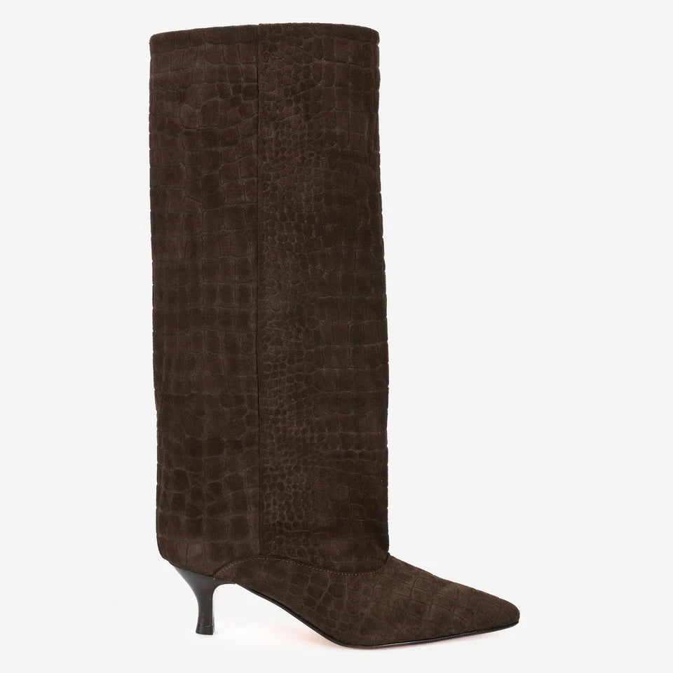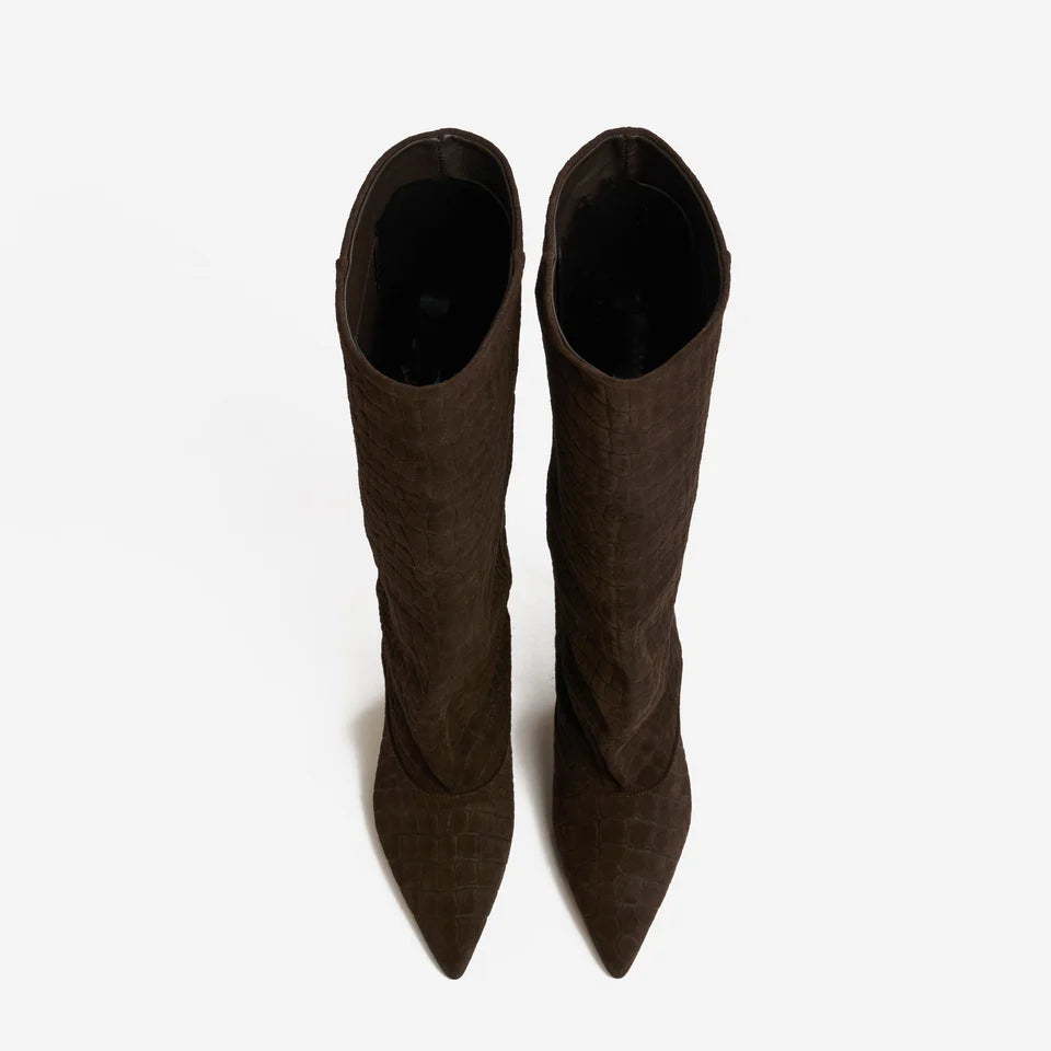 Stivale alto moro in camoscio cocco